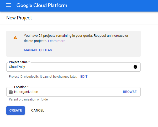 • Step 2: Click the project drop-down and select or create project for which you want to add an API key and give it a project name.