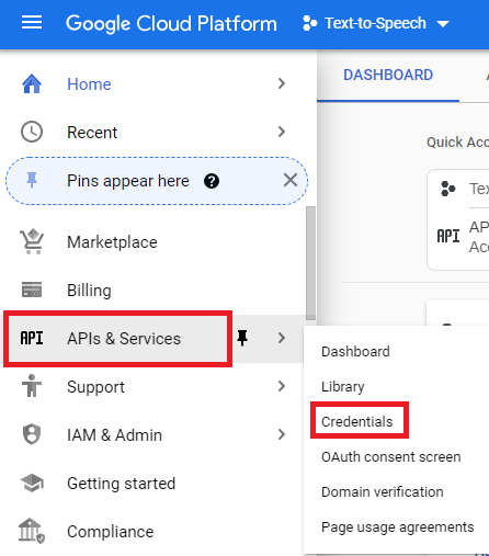 • Step 5: Go to API & Services -> Credentials.