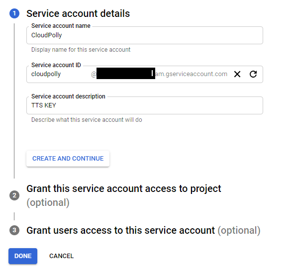 • Step 7: Provide Service account name and Service account description.