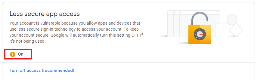 In your Gmail Account settings, under Security tab, make sure your Less secure app access feature is turned on.