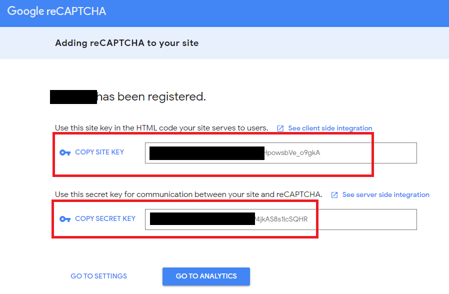 • Step 7: Copy both "Site Key" and "Secret Key".