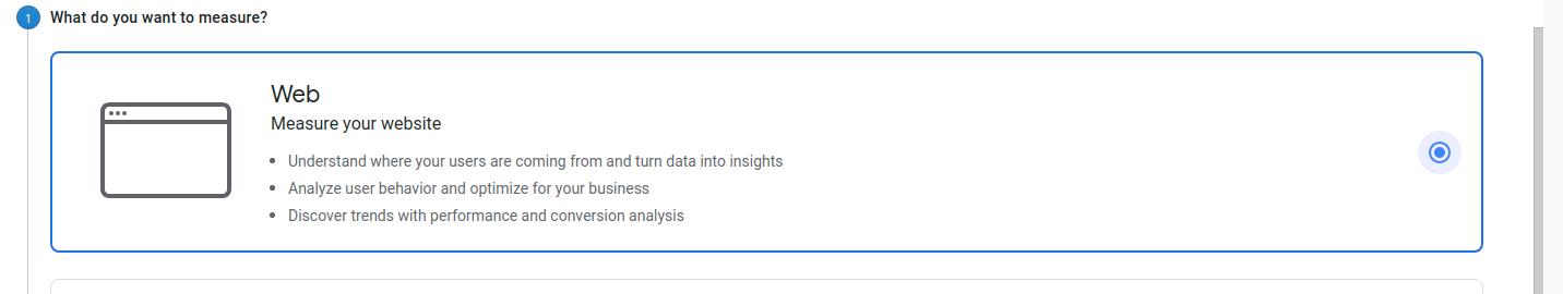 • Step 3: Click Create Property, **select Web and then Continue.**.
