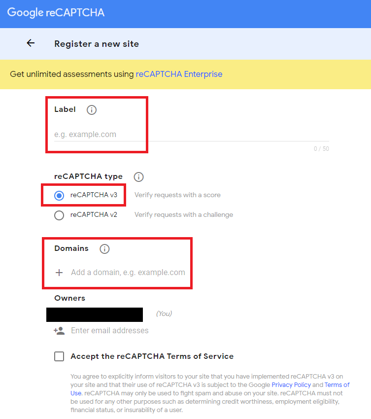 • Step 2: Enter Label to identify your reCaptcha keys.